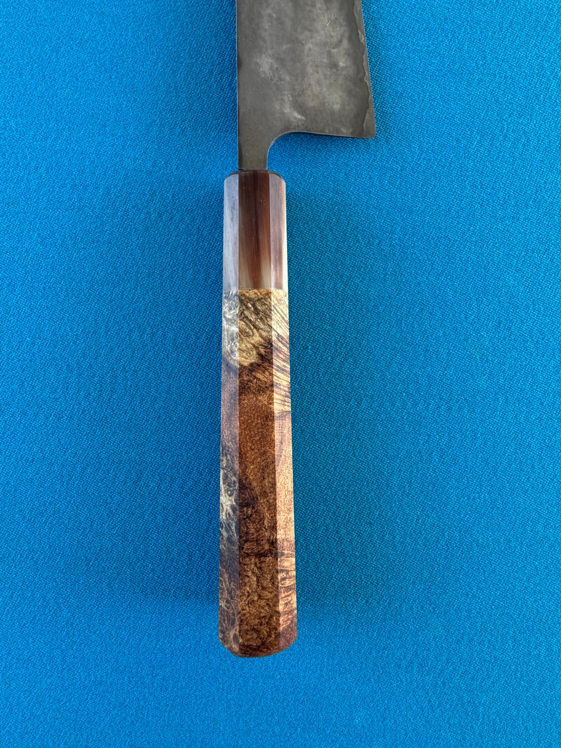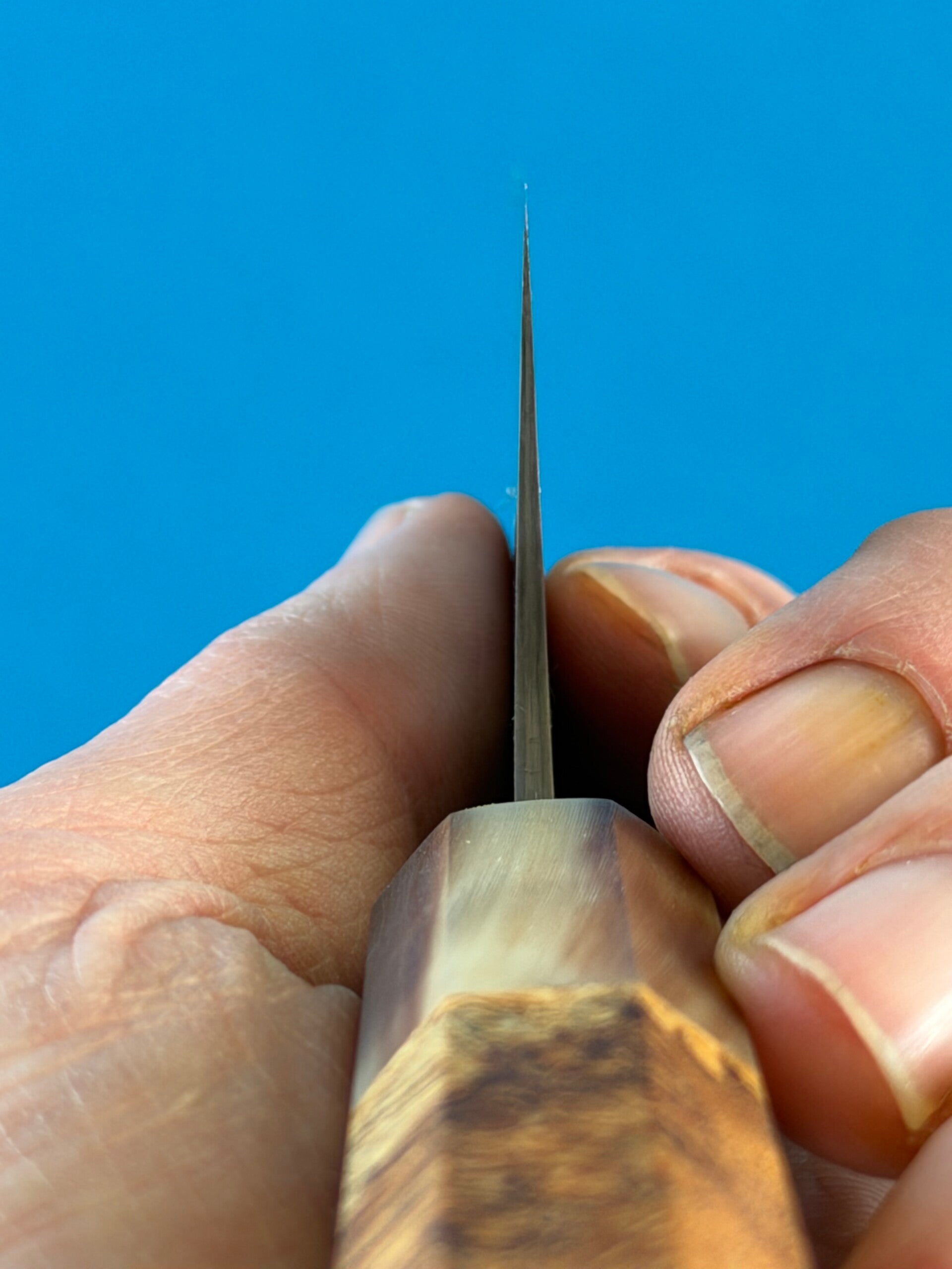 met 17 cm, 43mm hoog bij de hiel, een taper van 2,5 tot 1 mm is dit een slank mes dat vlijmscherp is en als allrounder kan worden gebruikt in de keuken.